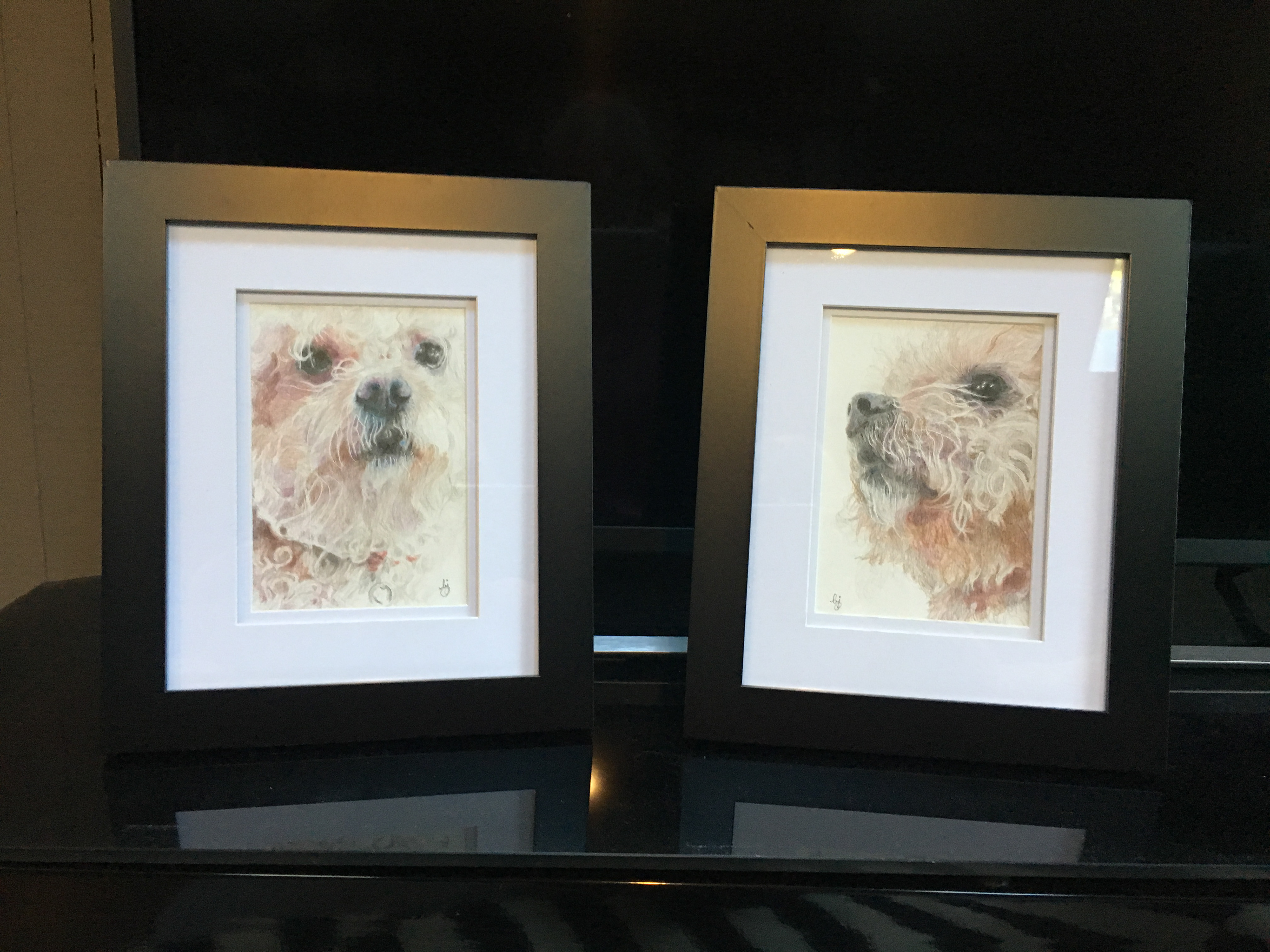 Ruby (2018) was a beautiful little dog who enjoyed a wonderful life with a friend. I did two views of her to showcase her lovely coloring and warm, dark eyes. The drawings are 8 by 10 and were created in colored pencil.